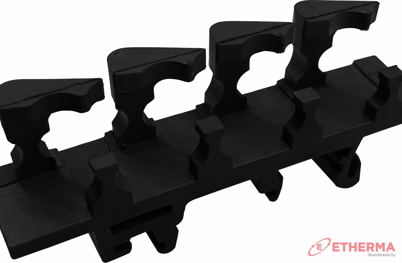 Yhteen DIN-kiskoon kiinnittäessä max 14-reikäinen kisko. Pidemmät kiskot kiinnitettävä kahteen tai useampaan DIN-kiskoon