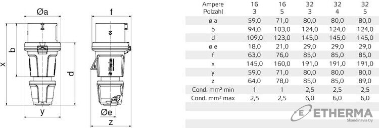 Nimellisjännite EN 60309-2 mukaan 400 V