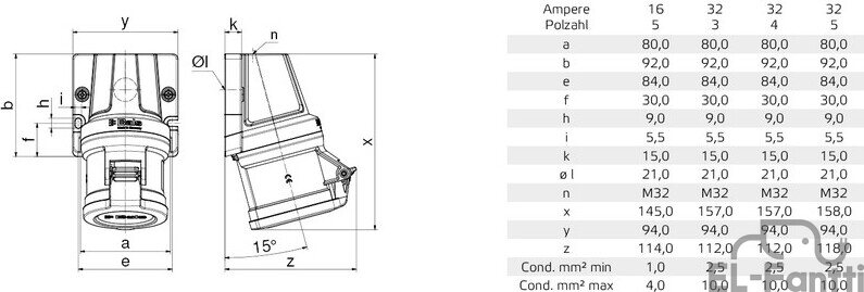 16A - 32A  200 - 240V / 346 - 415V 50-60Hz
