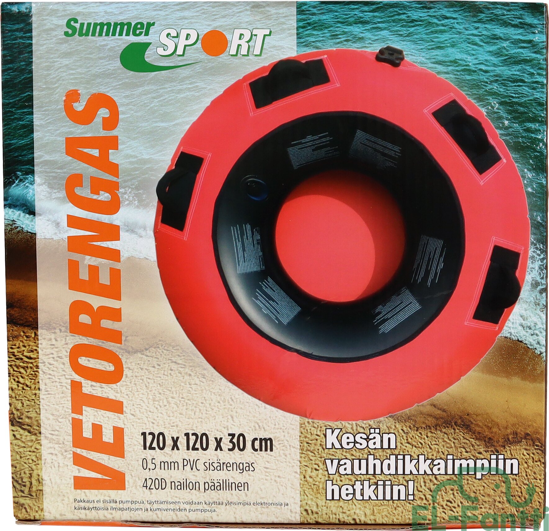 Huom. Paketti ei sisällä pumppua, täyttämiseen voidaan käyttää yleisimpiä elektronisia ja käsikäyttöisiä ilmapatjojen ja kumiveneiden pumppuja.