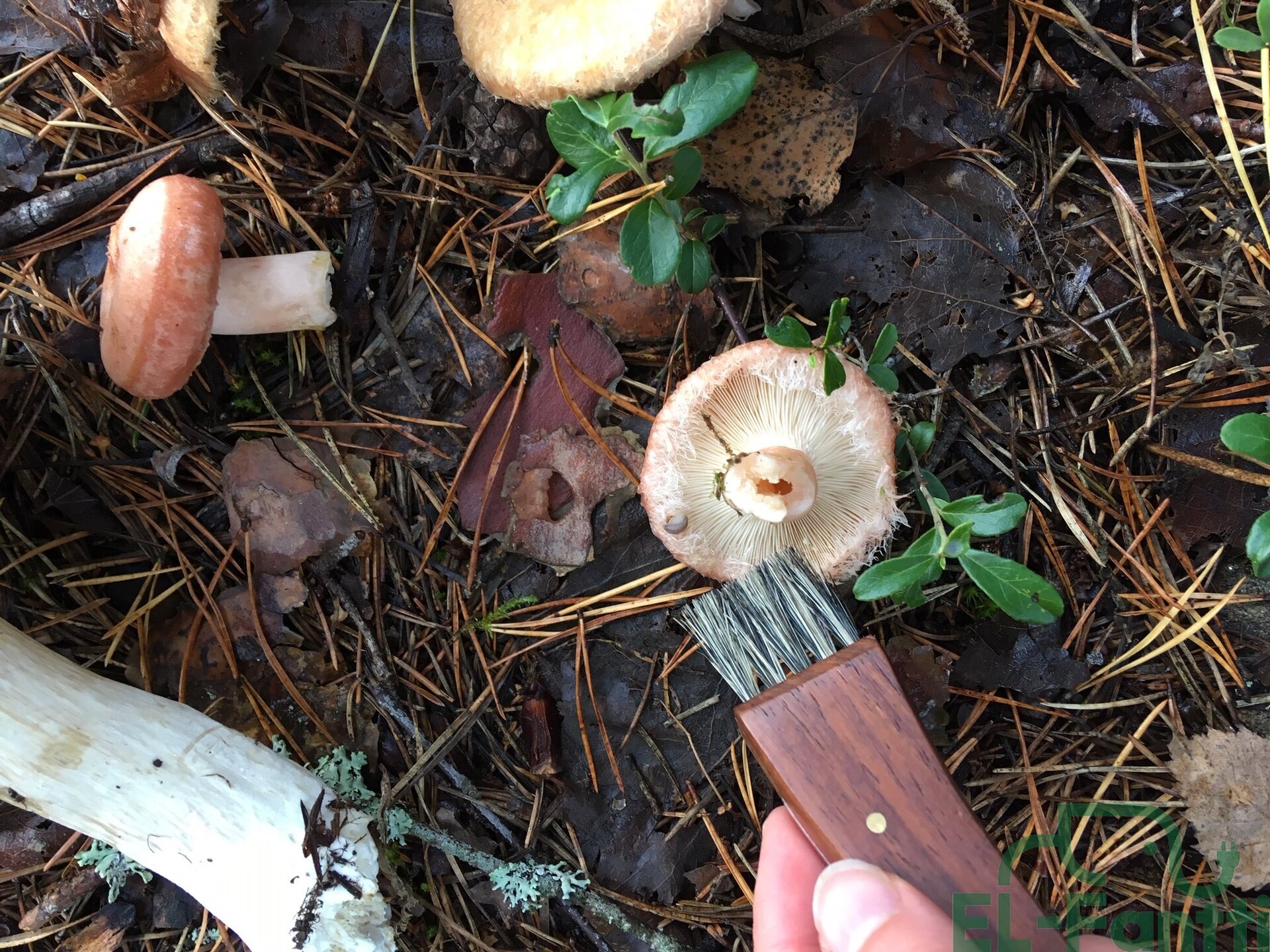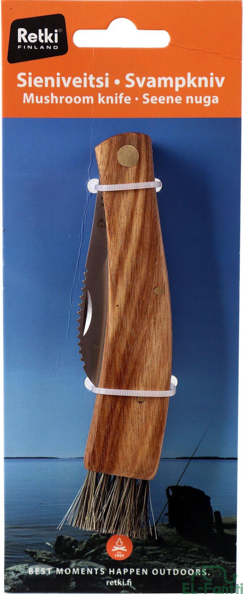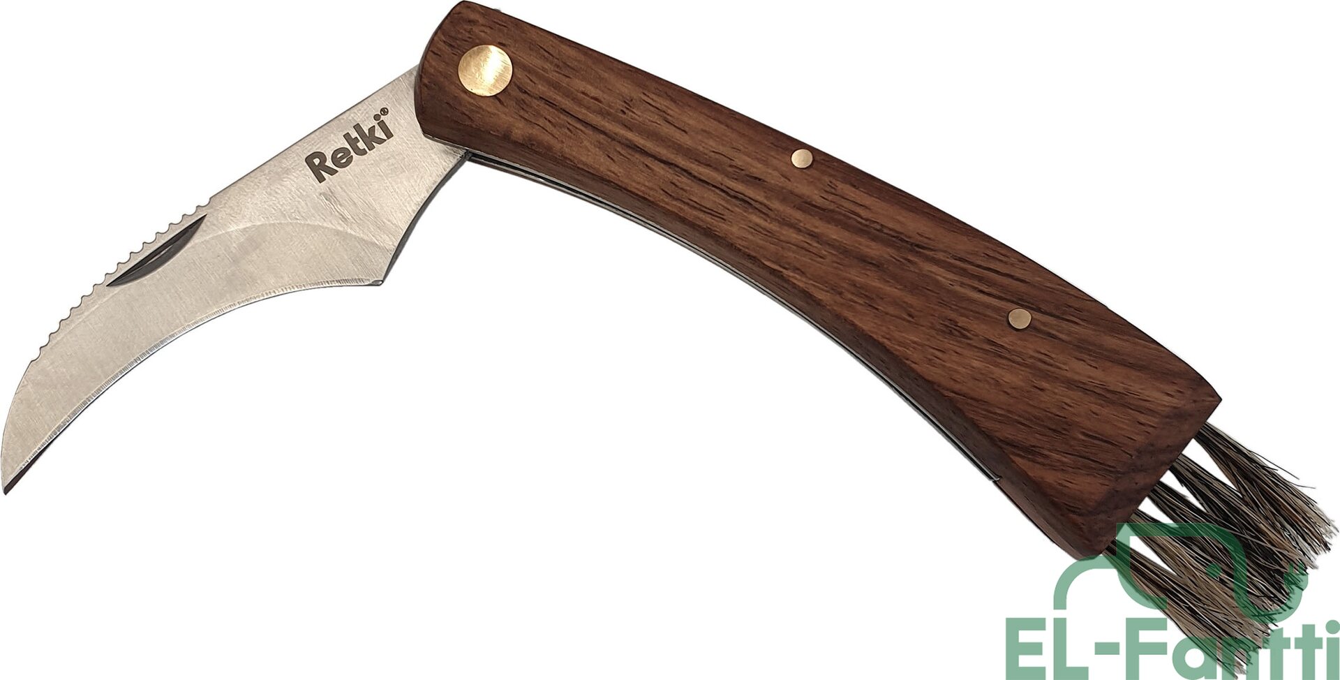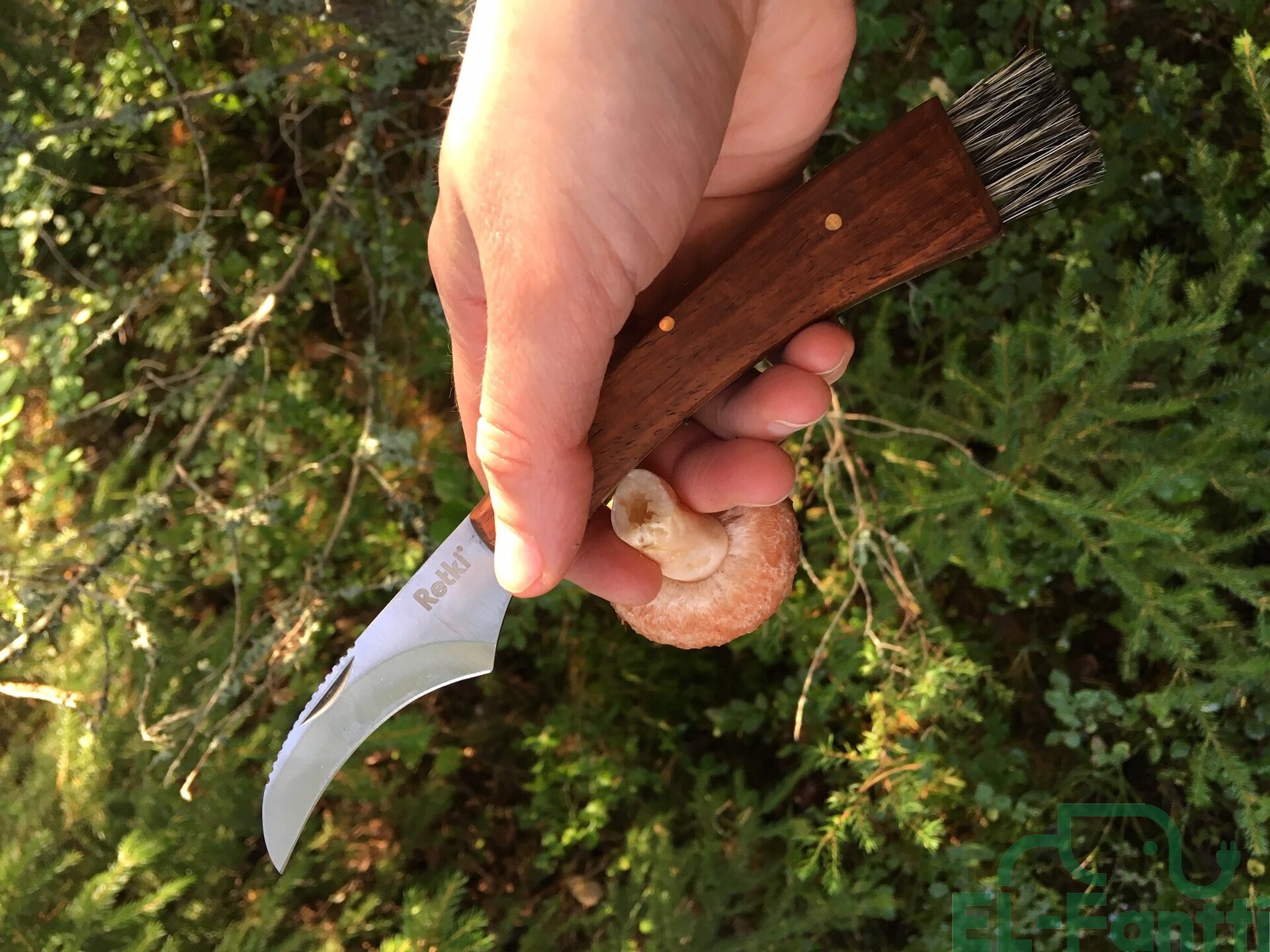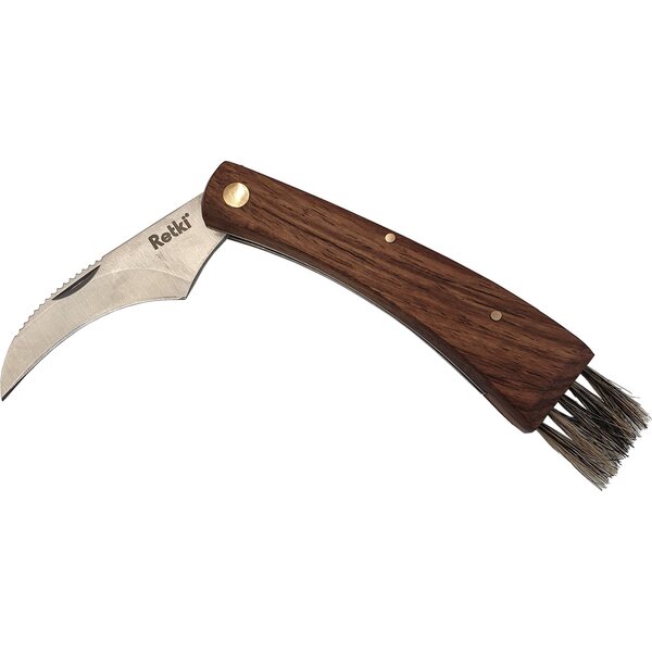 Tyylikäs puinen taitettava sieniveitsi. Kahva ruusupuuta, luonnonharjakset. Terä ruostumatonta terästä.