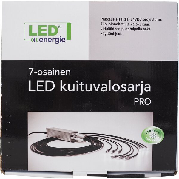 LED kuituvalolla loihdit herkän tunnelmavalaistuksen, loistavan tähtitaivaan tai vaikkapa näyttävän valoefektin kodin tiloihin. Kuidun voidaan asentaa myös saunaan ja kylpyhuoneeseen, projektori sijoitettava kuivaan tilaan. LEDien väri on lämmin valkoinen