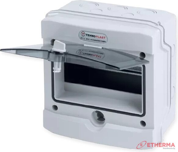 Pintakotelo valmiilla läpivientitiivisteillä.
